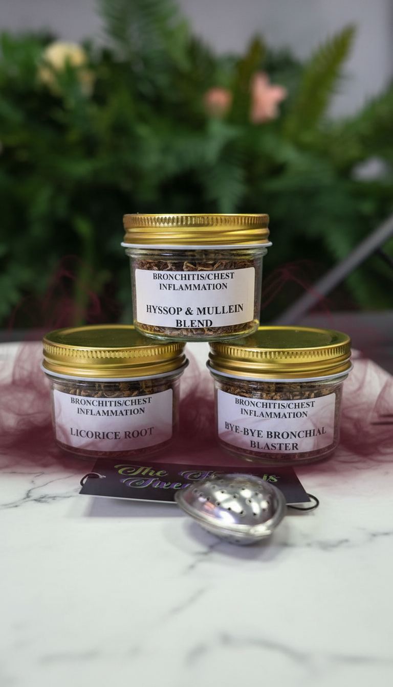 Crafted to comfort chest tightness and respiratory inflammation, this kit features Mullein, Hyssop, Licorice Root and Bye-Bye Bronchial Blaster, herbs traditionally known for supporting lung wellness and easing congestion. Perfect for when your breathing needs calm restoration.